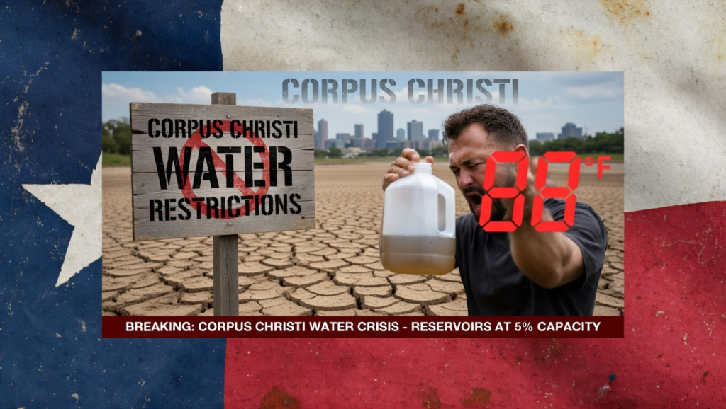 当Corpus Christi的居民拧开水龙头时,他们可能还没意识到,这座德州沿海城市的供水系统正以肉眼可见的速度走向崩溃。2026年3月18日最新数据显示,Lake Corpus Christi水库仅剩9.4%容量,Choke Canyon水库更低至约8.1%-9.4%,